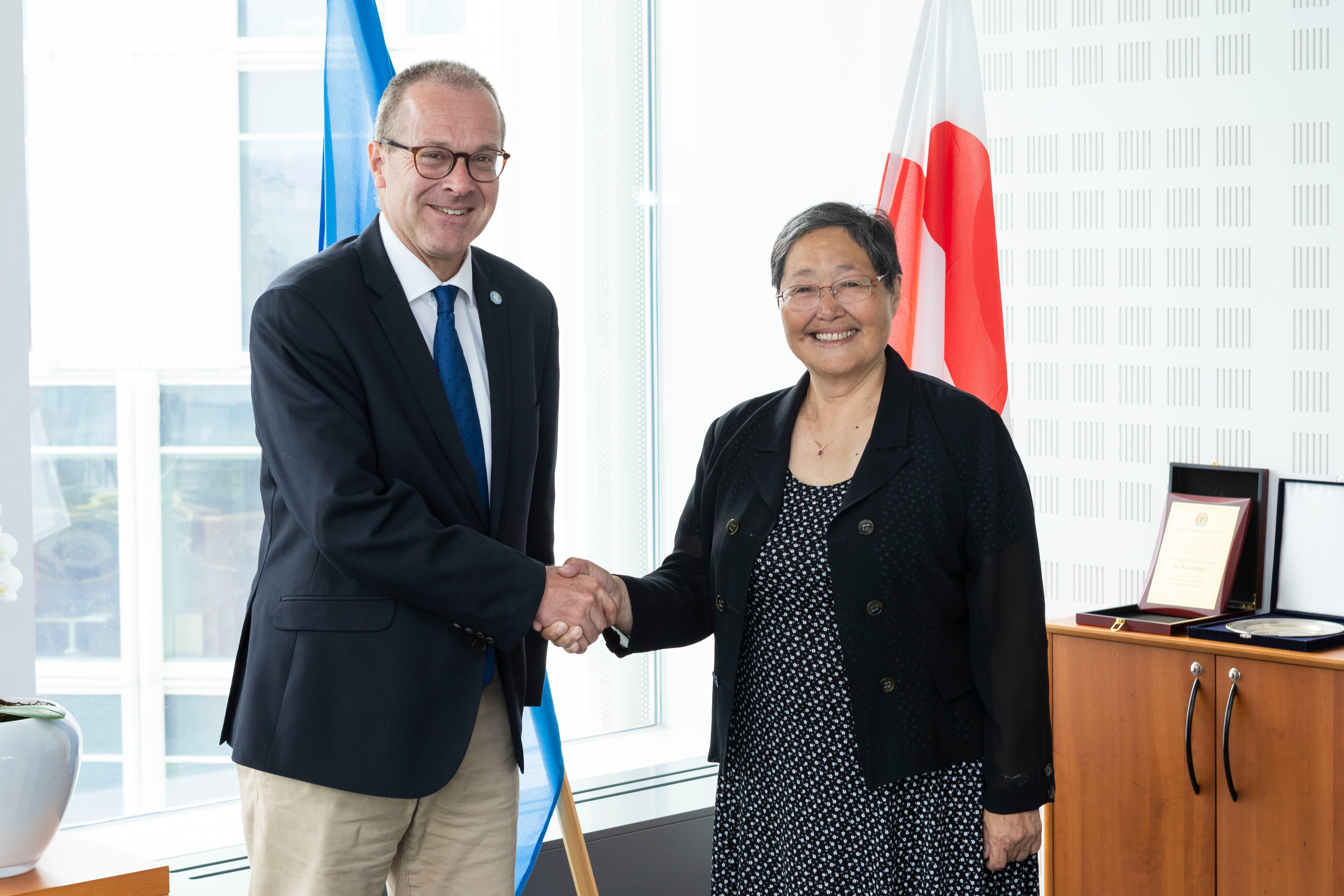 Peqqissutsimut Naalakkersuisup Mimi Karlsenip aamma Europami WHO'p Immikkoortortaqarfiani Pisortap Dr. Hans Henri P. Klugep ulloq 28. juni 2023-mi WHO'p Europami Immikkoortortaqarfianut pisortatigoortumik pulaarneranut atatillugu suleqatigiinnerup paasissutissanillu avitseqatigiittarnissap maani nunarsuup immikkoortuanut tamarmut isumaqatigiissuteqarput.