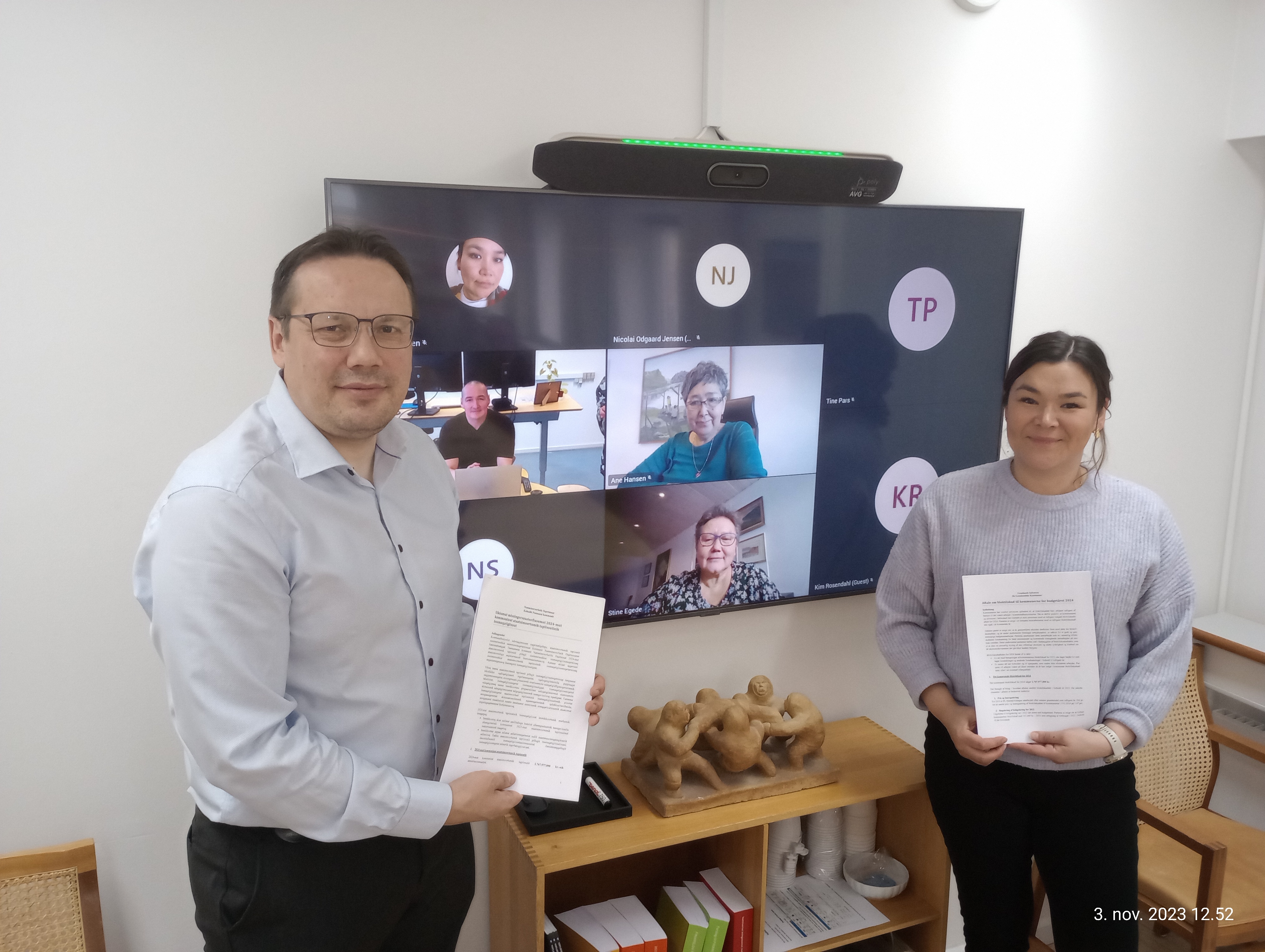 Borgmesterit Aningaasaqarnermullu Akileraartarnermullu Naalakkersuisoq ullumi 2024-mut kommuninut ataatsimoortumik tapiissutit pillugit isumaqatigiissuteqarput.