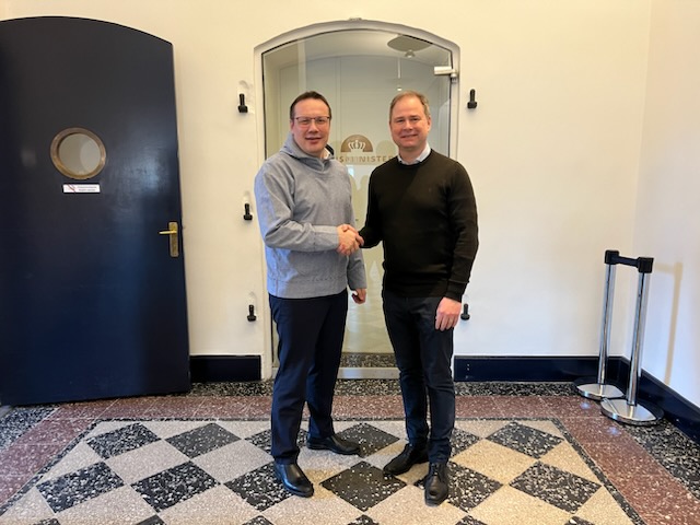 Finansminister Nicolai Wammenip aamma Aningaasaqarnermut Akileraartarnermullu Naalakkersuisup Erik Jensenip, Naalakkersuisup, imermit innaallagassiorfinnik aningaasalersornissaq pillugu annertunerusumik suleqatigiinnissaq pillugu ataatsimiinnerat.
