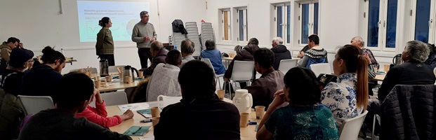 Naalakkersuisut har igangsat udarbejdelsen af en national klimastrategi. Klimastrategien skal indeholde de overordnede mål og indsatser for vores nationale klimaindsats og have fokus på udviklingsmuligheder i landet. Naalakkersuisoq Kalistat Lund vil afholde klimaworkshops i landet for at inddrage borgerne med fokus på deres oplevelser af klimaforandringerne og deres holdninger til klimaløsninger. Med besøgene i Tasiilaq, Sermiligaaq, Kuummiut og Kulusuk er de første klimaworkshops nu blevet afholdt. Forsker Inuk Petersen fra Pinngortitaleriffik deltog sammen med Naalakkersuisoq Kalistat Lund på klimaworkshopsene for at tale med borgerne om klimaforandringerne og konsekvenserne for lokalsamfundet.