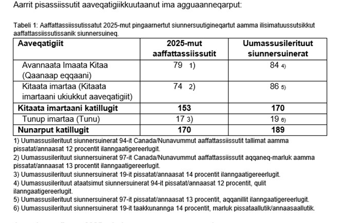Aqutsiveqarfinnut 2025-mi pisassat agguarneqarneri