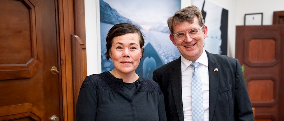 Suliniutit ilusilersorneqarneranni Naalakkersuisut illersornissamut ministerimik Troels Lund Poulsenimik, illersornissamullu pisortamik Michael Wiggers Hyldgaarimik qanimut oqaloqateqarput.