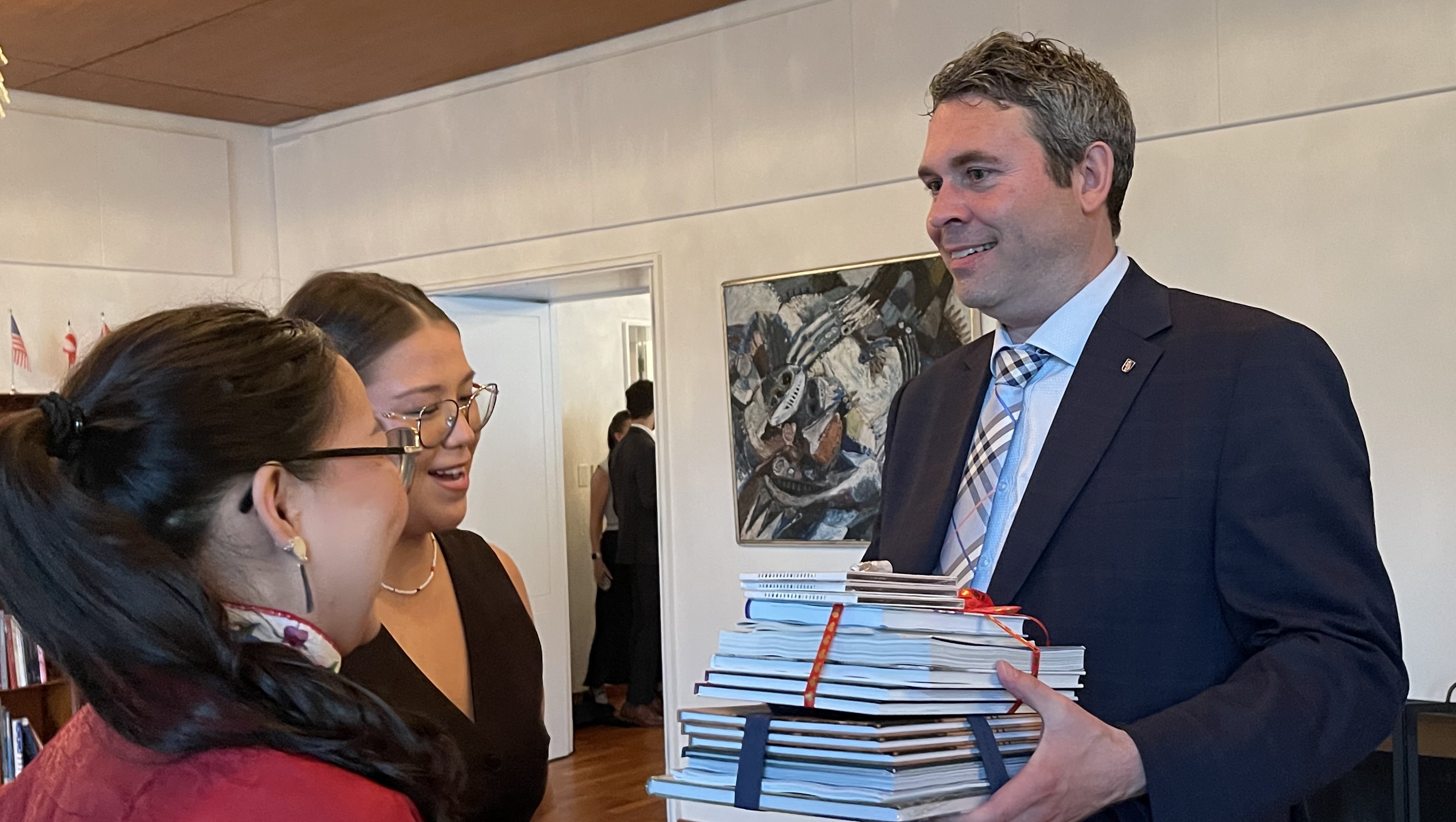 Jacob Isbosethsen benyttede lejligheden til at takke Kenneth Høegh for et stærkt og engageret arbejde som Grønlands repræsentationschef i Washington de sidste knap 4 år. Han fremhævede, at Grønlands Repræsentation blev etableret i 2014 – et vigtigt skridt i at styrke landets udenrigspolitiske profil. Han påpegede også, at USA’s generalkonsulat i Nuuk – oprindeligt åbnet i 1940 – blev genåbnet i 2020, hvilket markerede en fornyet og gensidig interesse i at uddybe samarbejdet. I lyset af den seneste tids amerikanske udmeldinger om Grønland blev det under arrangementet også understreget, at Grønland ikke er til salg eller til overtagelse, men at det grønlandske folk ønsker at blive hørt og respekteret som en ligeværdig partner. I talerne blev det fremhævet, at fremtidens samarbejde skal bygge på gensidig respekt, ligeværd og åben dialog – og at Grønland fortsat ønsker et stærkt og bæredygtigt partnerskab med USA og Danmark, baseret på fælles værdier og interesser.