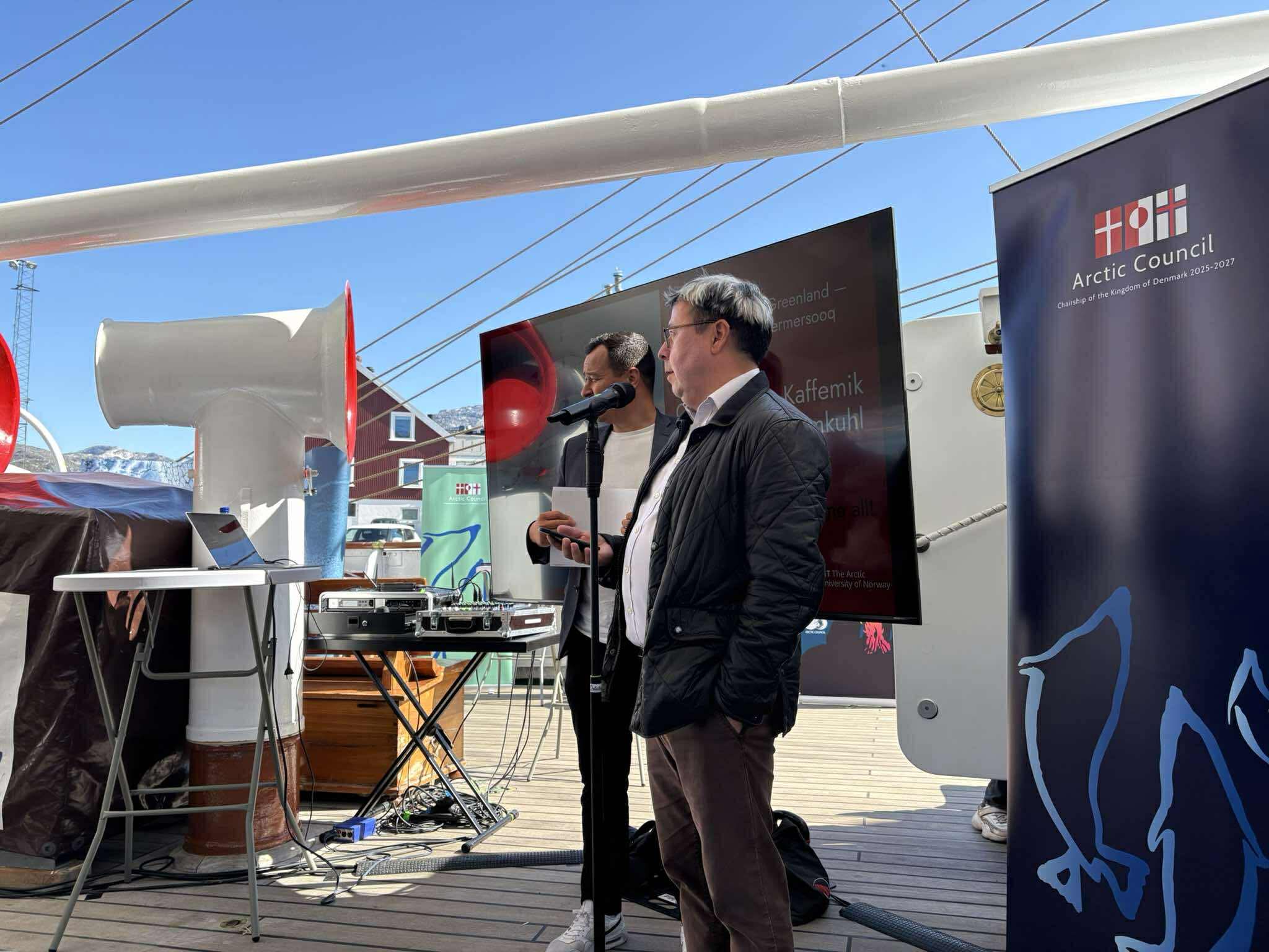 Ataasinngorneq 4. august 2025-mi Kunngeqarfik Danmarkip Issittumi Siunnersuisoqatigiit Siulittaasoqarfiat, UiT - Norgemi Issittoq pillugu Ilisimatusarfik, Arctic Mayors’ Forum aamma Arctic Frontiers umiarsuarmi tingerlaataannalimmi Statsraad Lehmkuhl-imi Norgemeersumi umiarsuarmut takornariartitsivoq kaffillernermullu qaaqqisisuulluni.