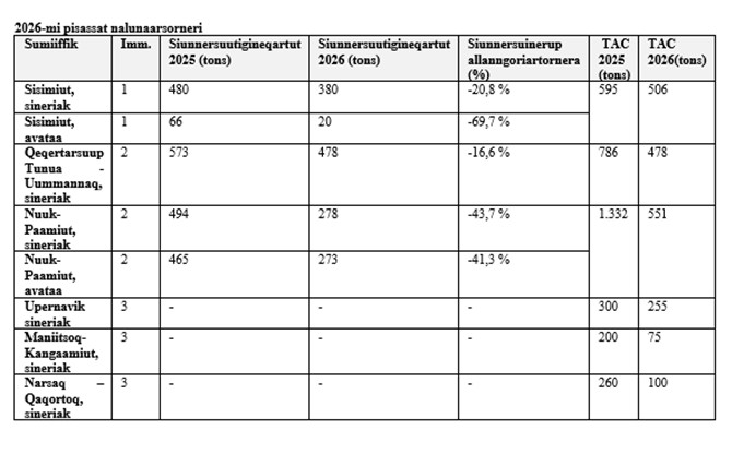 2026-mut TAC Kalaallit Nunaata Kitaani avataasiorluni qaleralittassat 17.664 tonsit Naalakkersuisut akuersissutigaat. 2025-miit 1.161,5 tonsinik amerlanerupput.
